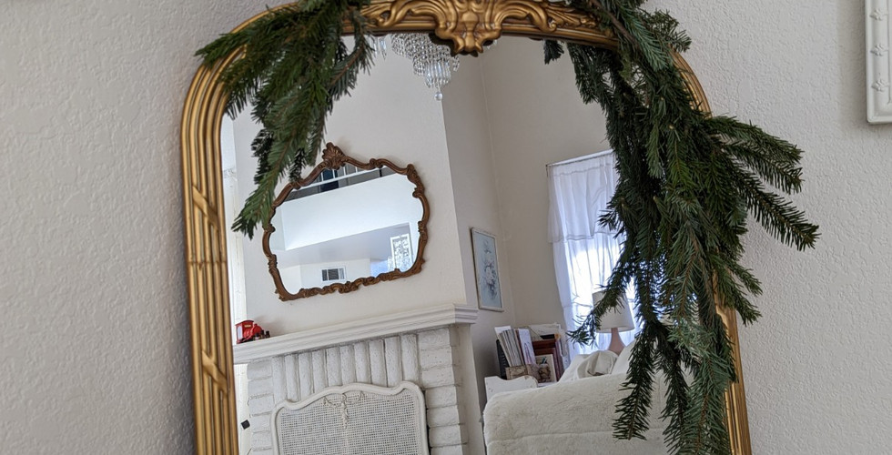 I first laid the garland over the piano and then tried to do it over the mirror and had kept having to rearrange and move some pieces around to get it more how I wanted it! It is faarrr from perfect and this was my first time trying this so I am not an expert and next time I would make it A LOT fuller and get different kind of tree branches!